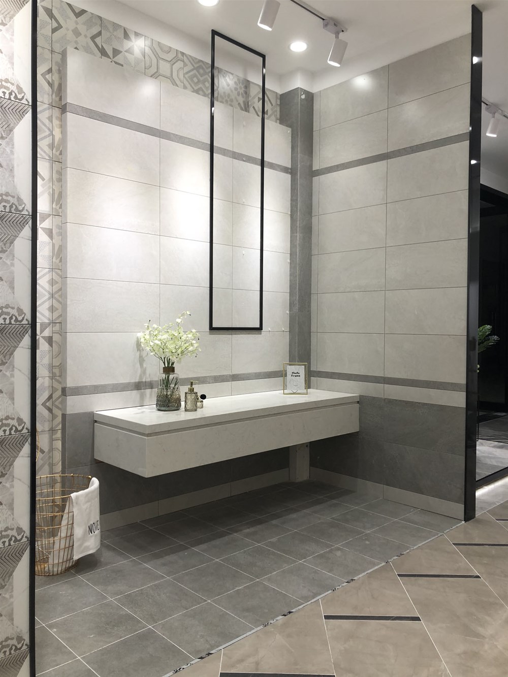 這是由緞光釉保加利亞灰鋪貼的衛(wèi)生間,私密性極好的一款磚,低調(diào)大氣,上墻下地都能鋪,現(xiàn)代簡(jiǎn)約風(fēng)和輕奢風(fēng)都十分適用。