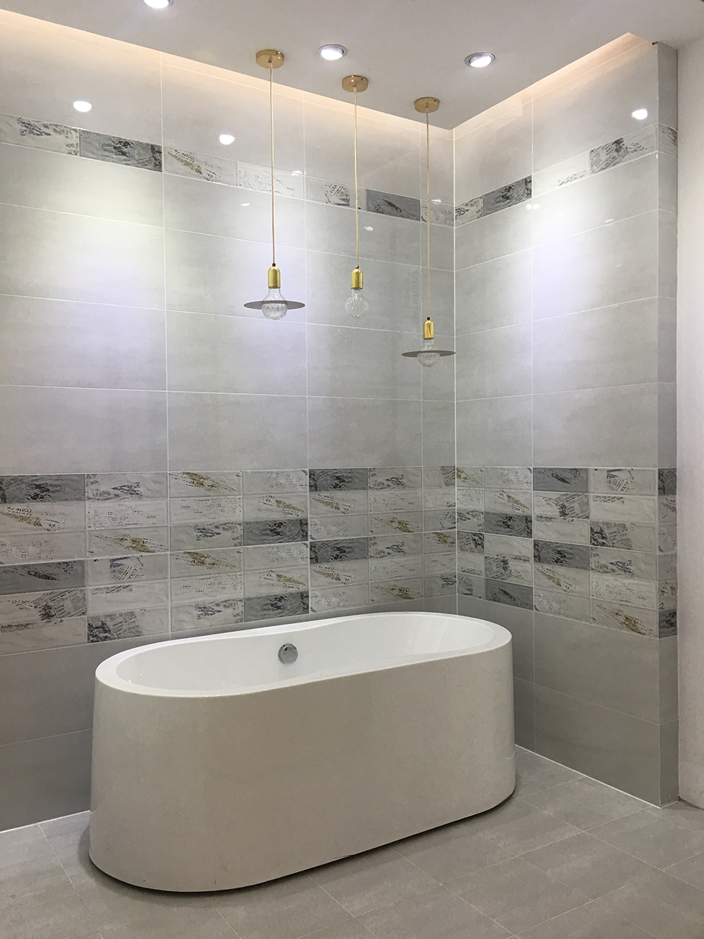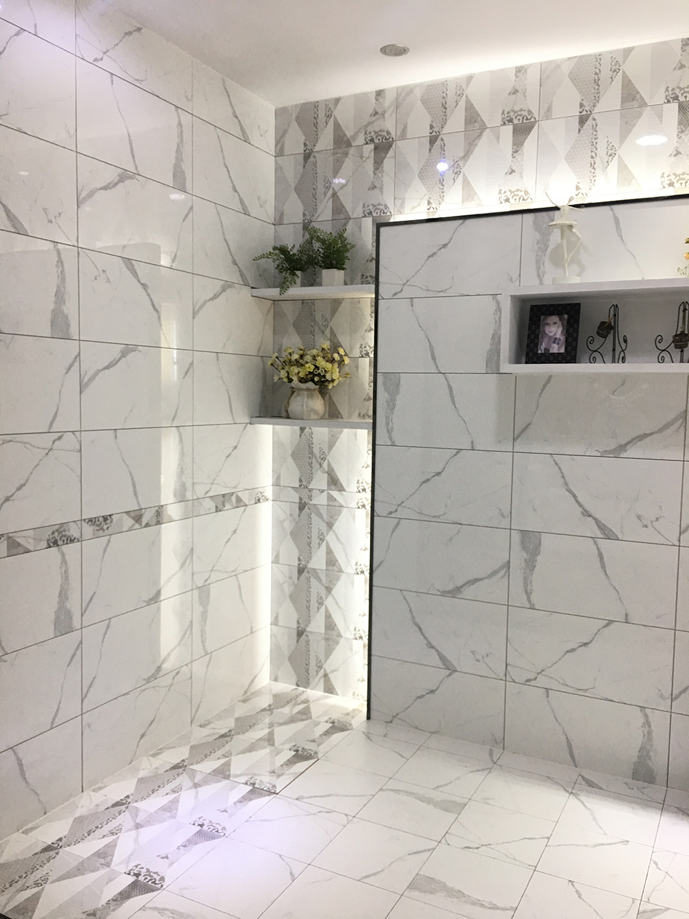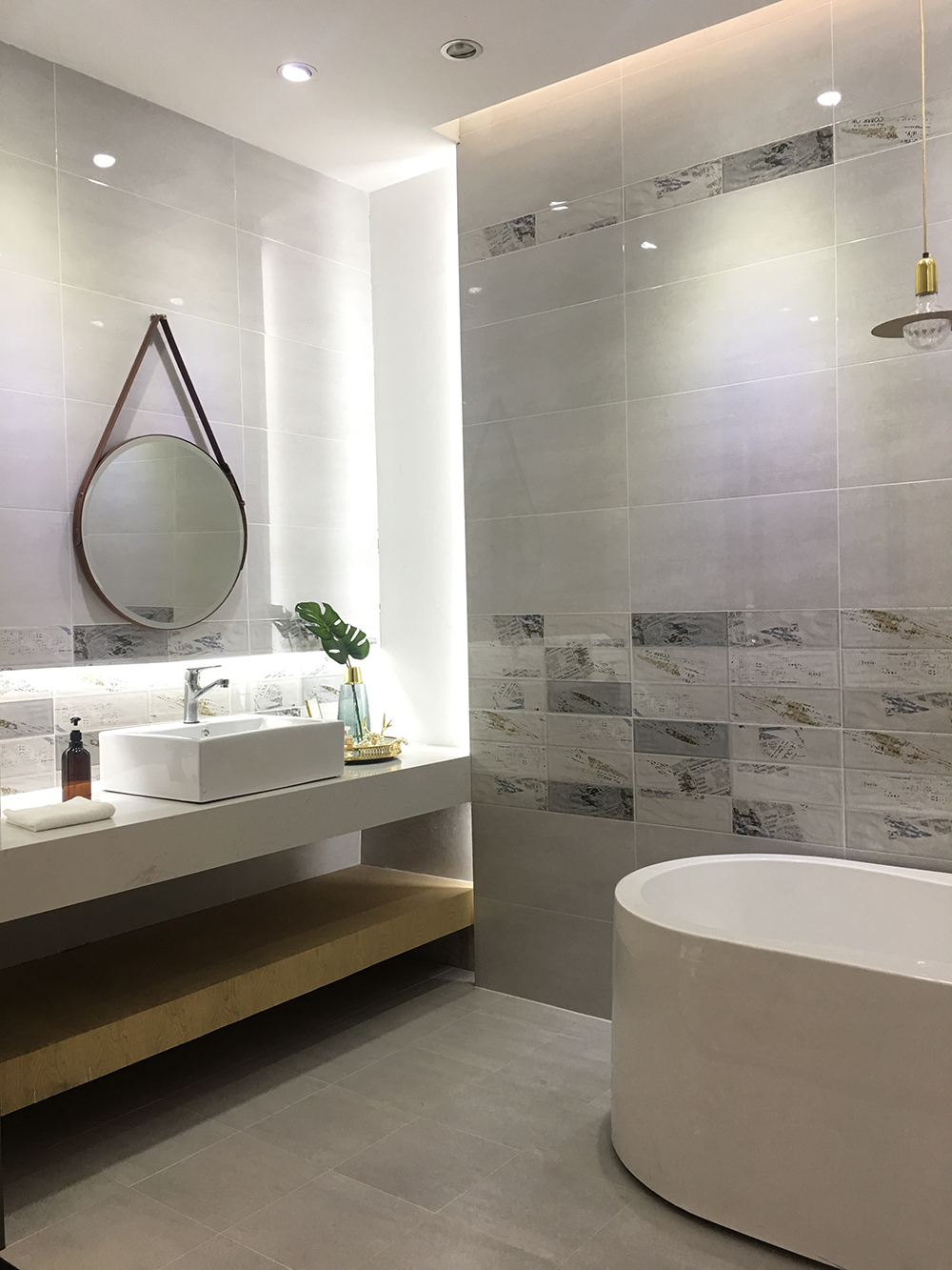 白色的瓷片鑲嵌著大氣的銀灰色紋理