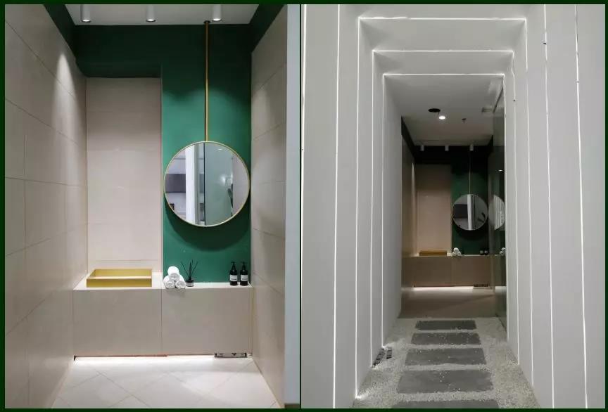 這時(shí)光走廊,一頭鏈接著主調(diào)為墨綠色的小空間,象征著每個(gè)人都曾經(jīng)有過的青春