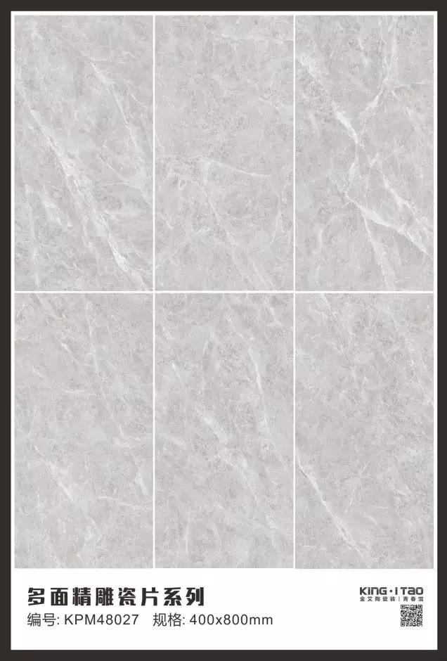 KPM48027是一款400*800規(guī)格噴墨亮光面的瓷片,高清晰多面文件,讓你的衛(wèi)生間墻面不再單調(diào),淺灰色主調(diào)加大理石流紋,營造出時尚而優(yōu)雅的空間美感。地面選用了15°緞光釉的KFD8813,更大更深的灰色大理石紋理讓空間沉穩(wěn),設(shè)計師別出心裁的把地磚切成了400*800規(guī)格,和墻面相映成趣,渾然一體。