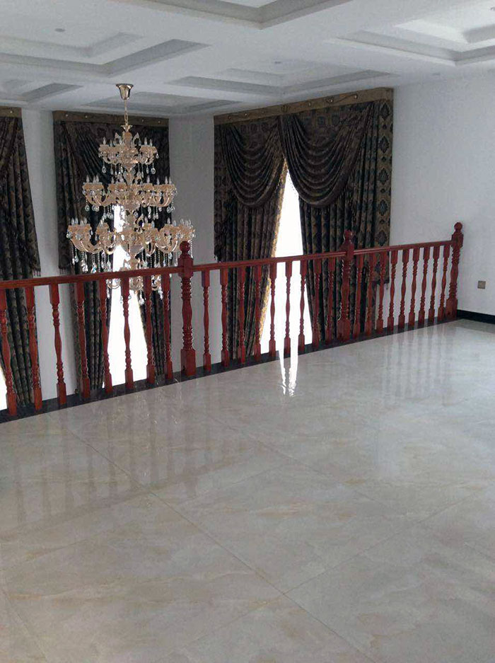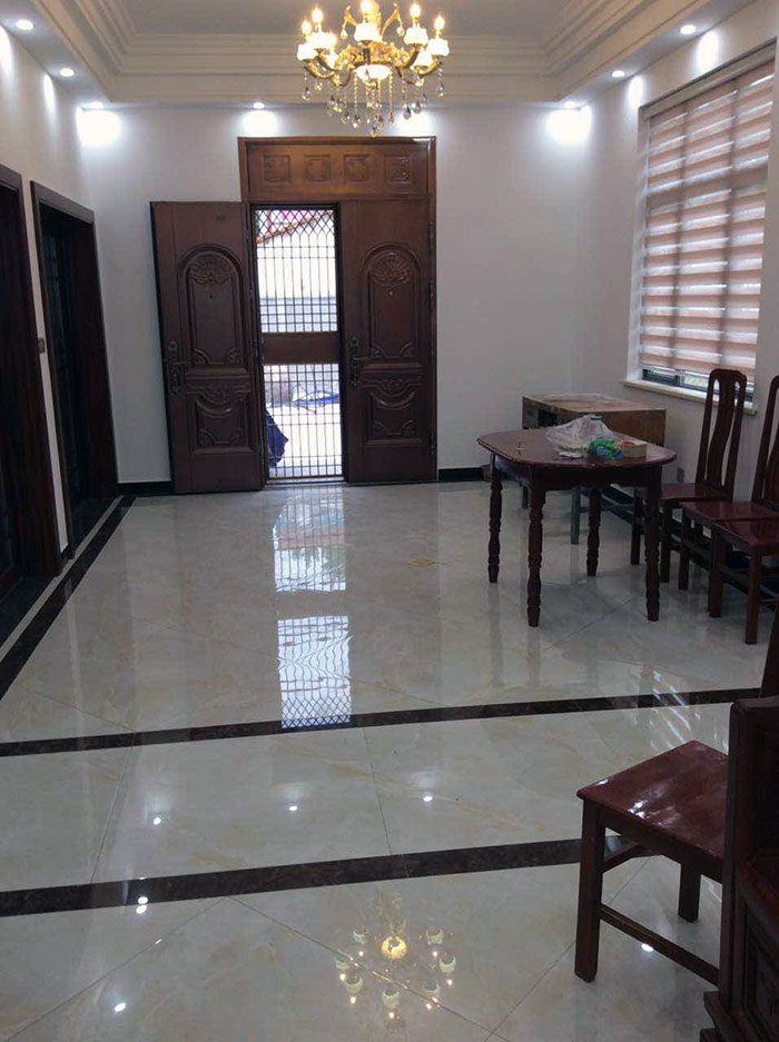 古色古香的紅木桌椅擺放在客廳正中,上面的雕花精美絕倫,地毯上的花紋顯示出其不俗的藝術(shù)價(jià)值,幾面碩大的窗簾傾瀉而下,將整個(gè)空間的格局無限放大,金艾陶玉石瓷磚天山玉KYP8001的鋪貼運(yùn)用,使整個(gè)空間在濃濃古韻中滲透了幾許現(xiàn)代氣息。