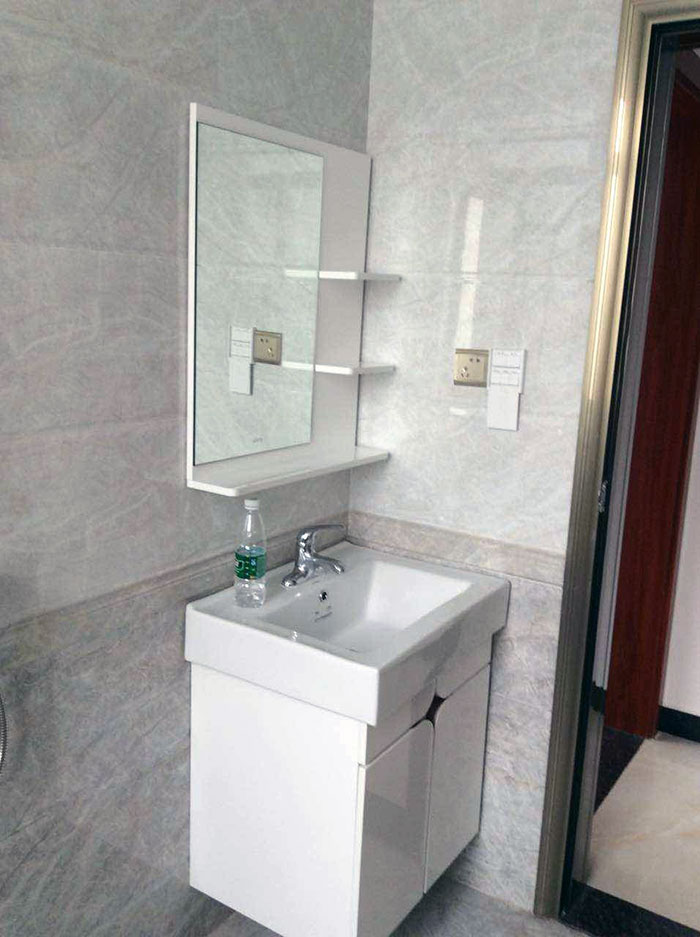 浴室柜比較小巧精致,側(cè)面紅色,柜門及洗手臺則以白色為主,給人干凈、清新的感覺。整個(gè)空間鋪貼金艾陶內(nèi)墻磚KPM36015、KPM36016系列,時(shí)尚、簡約,為整個(gè)浴室空間增添了十足的現(xiàn)代感。