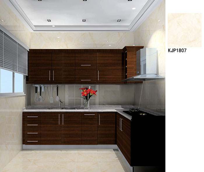 很多人誤以為廚房一定要鋪貼瓷片才可以,其實(shí)不然。陶瓷一線品牌金艾陶金剛釉Ⅱ代瓷磚玲瓏玉在廚房空間的大膽嘗試,展現(xiàn)給人們另一種清幽淡雅的美,高耐磨、防污效果,為您打造不一樣的烹飪天堂。