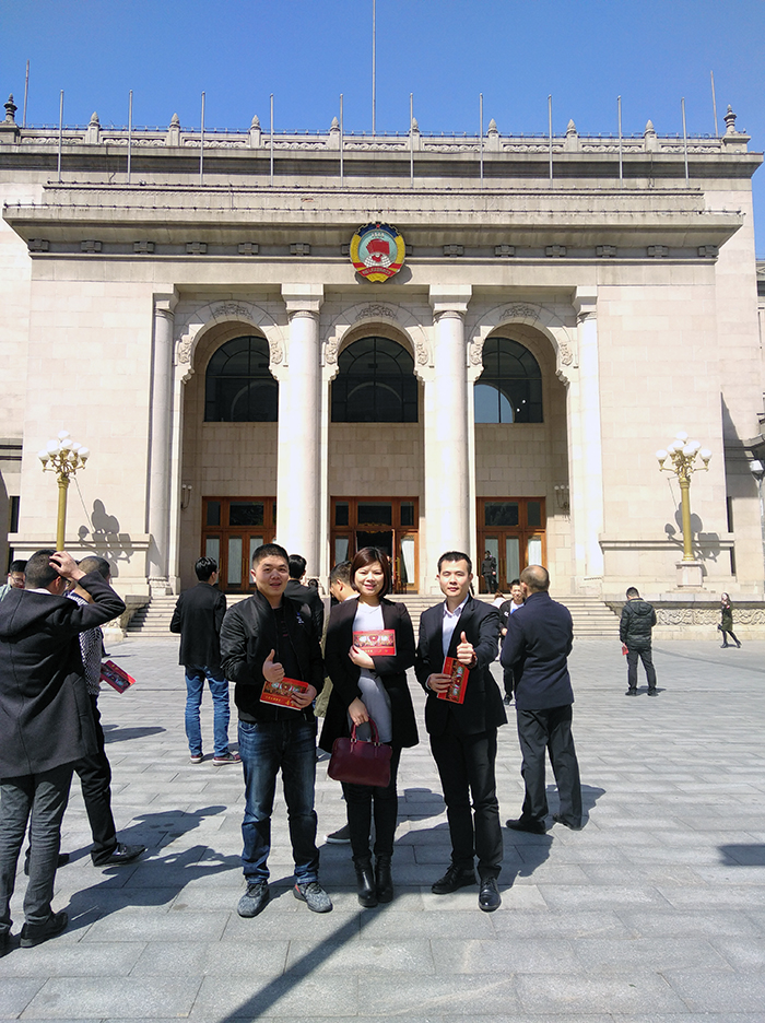 金艾陶瓷磚品牌北京代理商與網(wǎng)絡(luò)營(yíng)銷部經(jīng)理王宏城在會(huì)場(chǎng)前合影留念
